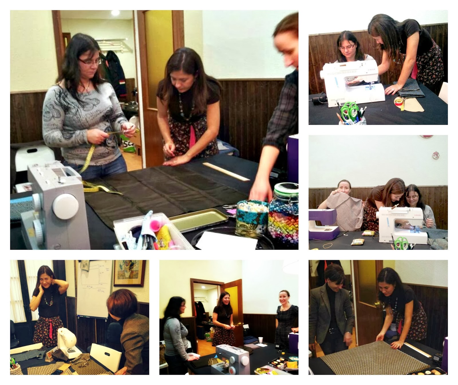 La tarde pasó muy rápida...las horas a mí se me escapaban de las manos...y los avances de las tres chicas iban poco a poco, sin parar...muy pacientes y con buen paso....Pero no sé porque??? , la hora de acabar llegó muy pronto.. demasiado pronto y las faldas estaban sin terminar...ainss.....a pesar de eso.. todas accedimos a quedarnos un rato más para intentar acabarla....pero no pudo ser.... Las chicas se llevaron a su casa las faldas semi-acabadas...a falta de coser el bajo...Pero os habéis fijado?...Todas sin apenas decirlo en voz alta...decidimos que nos quedábamos un rato más para avanzar juntas...allí reunidas con máquinas de coser a las que no están habituadas, en un espacio de costura ajeno al nuestro...pero el compañerismo que se respiro en todo momento era tan tan bueno....que yo al menos... no quería que se acabará!!....