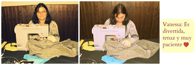 Bueno....pues a las 16:00h, llegó otra alumna... pobre mía Vanessa, venia directamente de trabajar con un bocata en el cuerpo a toda prisa por llegar puntual y llegó!!!. Y la tercera alumna, Alicia, que trabaja por las mañanas para dedicarle la tarde a sus retoños sacrificó su tiempo libre para asistir a la sesión costuril!!.